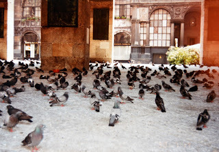 There is something I love about seeing a flock of pigeons in Italy. They seem 'to have the life'. They get unlimited Italian food scraps and they have the beauty of surrounding plazas all over Italy.