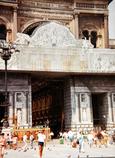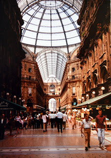 "Why is when I take a photo of you I can see you, yet when you photograph me it's like a FIND WALDO picture!"He frowned. At least I have the photos to prove it.I love the breathtaking ceiling at this one particular shopping mall in Milan. Everyone dresses so chic, too. I'm sure we stood out as tourists--but then again, that IS what we are.