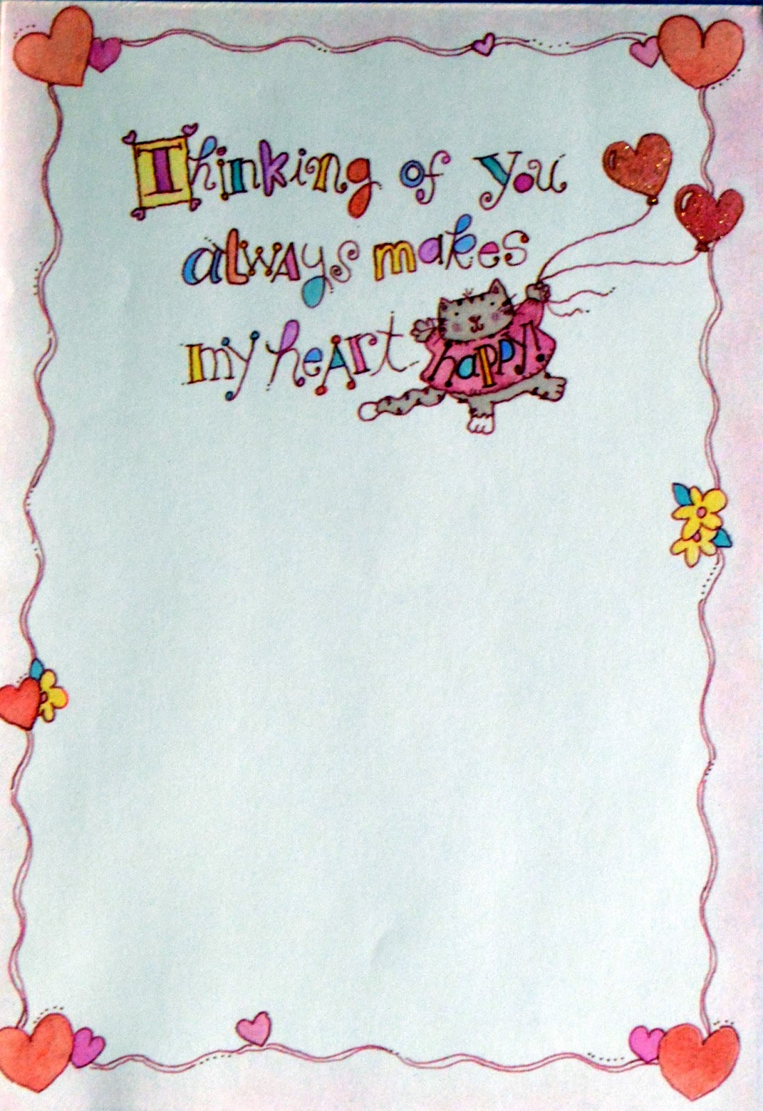 3-12-90Dear Paloma,I’m glad your Xmas presents finally arrived, Ha-Ha. It took long enough by boat, didn’t it? Maybe there were a lot of animals on the boat like this one (I pointed to my Noah’s Ark address label).My horoscope says to FLEX THOSE MUSCLES AT THE GYM but it’s already 7:30PM. I don’t think I’ll be going. I’m very stressed out. I was in a car accident on 3-1-90. I wasn’t hurt and it wasn’t my fault but now my passenger door is all dented. I have to wait on the insurance to get their act together. These things happen. And FUNDS $$$ are tight.I signed up for ‘2’ courses at UCLA: INTRO TO SCREENWRITINGAndA SNEAK PREVIEWS Class where we watch brand new International films as well as new contemporary films before they are released to the movie theaters. It should be fun. My first class begins in on April 4th.I also have an interview tomorrow with J. Walter Thompson Advertising Agency. They are one of the top Ad Agencies I the US with offices in L.A., S.F., NY and Chicago. It’s only an entry level administrative assistant type job but I think I’d take it if offered. This card was from an old magazine I found. Thinking of You.All My Love, MichaelPS-Sherri should have the baby any day now.
