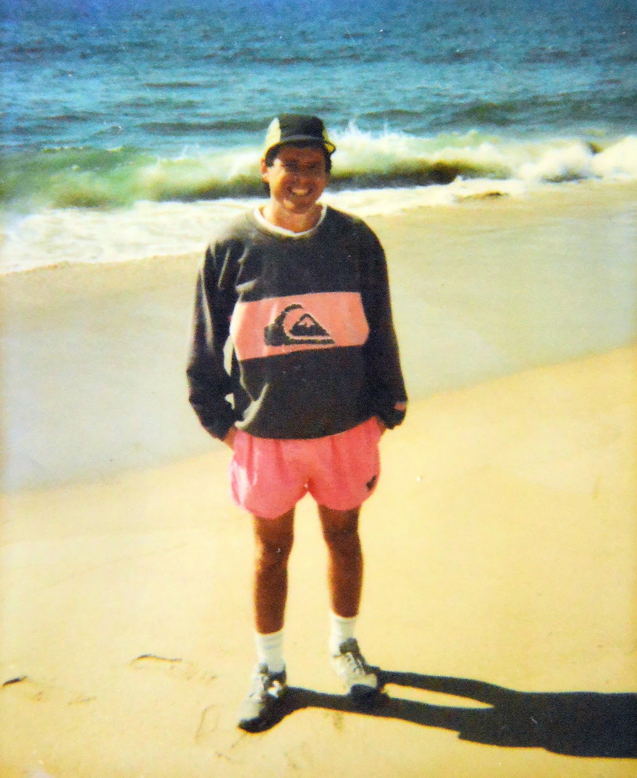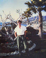 The visit to the Year-Round Christmas Store wouldn’t be complete without a photo of Alan with Santa, so I was sure to capture this moment as well.This day (February 20th) was a celebration sort of day for us as we had met 3-months before (November 20, 1989). It was our 3-month anniversary. We commemorated it earlier in the day with individual photos on the beach. I imprinted my name in the sand: ARMIJO. Alan took the photo.