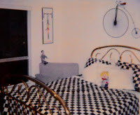Once home I took some photos of the new French Doors. I simply need to paint the middle of the doors to accentuate the trim of the design that is there. I wanted to show mom how it looked. I also photographed my bedroom. It looked funny with my Pee Wee Herman doll and my stuffed toy of ELROY (from THE JETSONS).