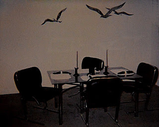 I took a photo of the dining area as well. The chrome seagulls on the wall were my own idea for giving the beach feeling. I love the beach.