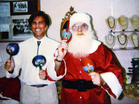 Just before dinner on this night we discovered a Year-Round Christmas Store. I thought it funny because there was a Santa Claus there, too. He was quite friendly and had a ‘real’ beard. Alan photographed me with Santa, holding maracas (those rumba shakers that rattle and are sometimes used as musical instruments).