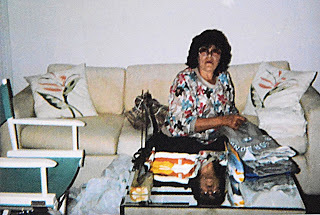 November 3, 1989: Mom arrived for an extended weekend to help me set-up and organize at my new home that I will officially be living in on November 17th. I do plan to go back to Alameda from November 23-26th for Thanksgiving though. Mom was so sweet to fold my T-shirts. After she folds them they look they were just purchased from the store again. I took a photo of her in my new living room. My SORBONNE, PARIS t-shirt was on top of the t-shirt pile.