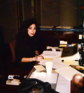 I was happy about my half day of work. I suited up in my bike outfit and took a long ride via the Beverly Hills flats neighborhood. Then I drove my car into Century City and walked into the law office where Violet was working. I had my Polaroid with me and took a photo of her behind her desk.PHOTO: Violet Levi, at work