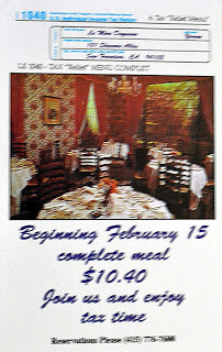 Hi! …had lunch one Saturday (San Francisco) at a very nice French Restaurant. Unusual card…at a tax break price. How about that? I had a Grand Marnier Souffle for dessert. Yum!Hope all is well with you. Love, GloriaP.S. Received the L.A. Times Food Section, Thanks!