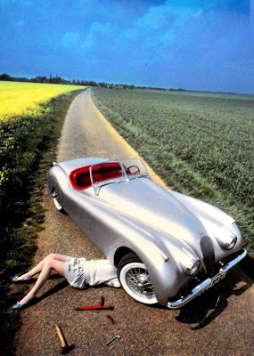 I wonder if I should tell him. How long will it last? I can’t shake the feeling. Maybe I can demonstrate the song in a subtle way and include the song on a tape of songs made especially for him. All I know is that when this song played during my drive I tended to accelerate from 65 to 75mph. I just wanted to be back at my pad. As I continued my journey back another cool song appropriately started to play called VOYAGE VOYAGE by Desireless. I Love it when these wild coincidences happen. Upon my arrival to West Hollywood I was happy to find another card from Dorothy Rua. It was a classic photo card of a ‘damsel in distress’. Dorothy wrote: