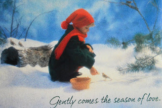 Dorothy Rua sent another Christmas card of a lonely boy feeding a bird in the snow. She didn’t write anything of substance in the card, simply best wishes for the holidays and the New Year (1990).