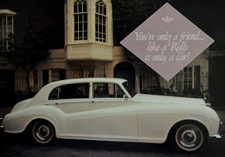 Dusty Nipper also wrote me a day or so later, using a postcard of a white Rolls-Royce with this imprinted on it “YOU’RE ONLY A FRIEND…LIKE A ROLLS IS ONLY A CAR.” At first, I misinterpreted it, thinking she only wanted to be friends. It made me realize that we will always be MORE than just friends in our very own secret way. She wrote: