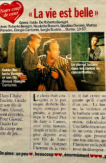 Yesterday, we saw LA VIE EST BELLE (LIFE IS BEAUTIFUL). It is Roberto Benigni’s movie. Have you heard about him? He gave a fantastic show at the CANNES FESTIVAL with Martin Scorsese (he kissed his feet). I liked the movie so-so, but Benigni seems to be such a nice person. Isn’t it SNAKE EYES that’s the new Brian De Palma movie? I thought it was because you say Nicholas Cage directed it. It is coming out here on November 11th. We’ve got a bunch of fantastic new theaters in Montpellier (which is the big city around here). So, how as SNAKE EYES?