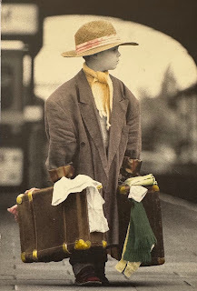 Cousin Edward M Espinosa in Albuquerque, NM sent a cute card of what appeared to be a young boy all dressed-up and running away, waiting for a train to take him away.