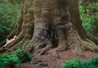 Cousin MaryAnn Gehling sent me an actual leaf from a fallen Colorado tree, a compact and cute message in her card of a young gal underneath the giant trunk of a huge tree.