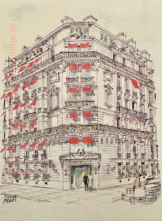 What a comedy of errors with plane strikes, delays, baggage handlers not working; however, we arrived safe, bedraggled and tired. The hotel is very charming, so “French”. Our room is magnificent, and the maid says, “Bon Jour”. Off to see the town, will write again. Love to all. Affectionately,