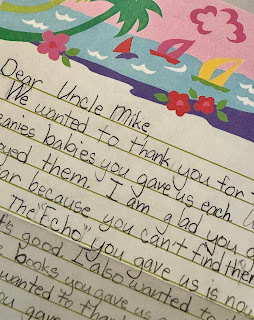 I love it when someone writes a brief note on the outside of the envelope. Holly wrote on outside the envelope in pencil: ‘And Happy Birthday UNCLE MIKE A.’