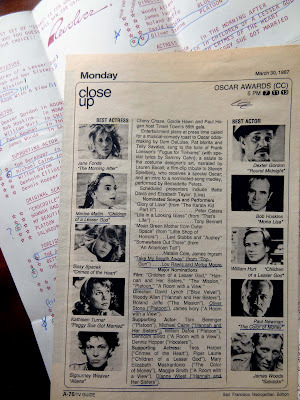 It's funny how I saved the Academy Awards ballot that I found at the REVOLVER bar in Los Angeles. I used it last night in guessing the Oscar winners. I wanted Sigourney Weaver to win for ALIENS.