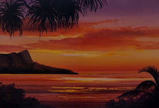 Bill sent a DIAMOND HEAD AT DAWN card that is from an original oil on canvas by CHARIE. Bill wrote: