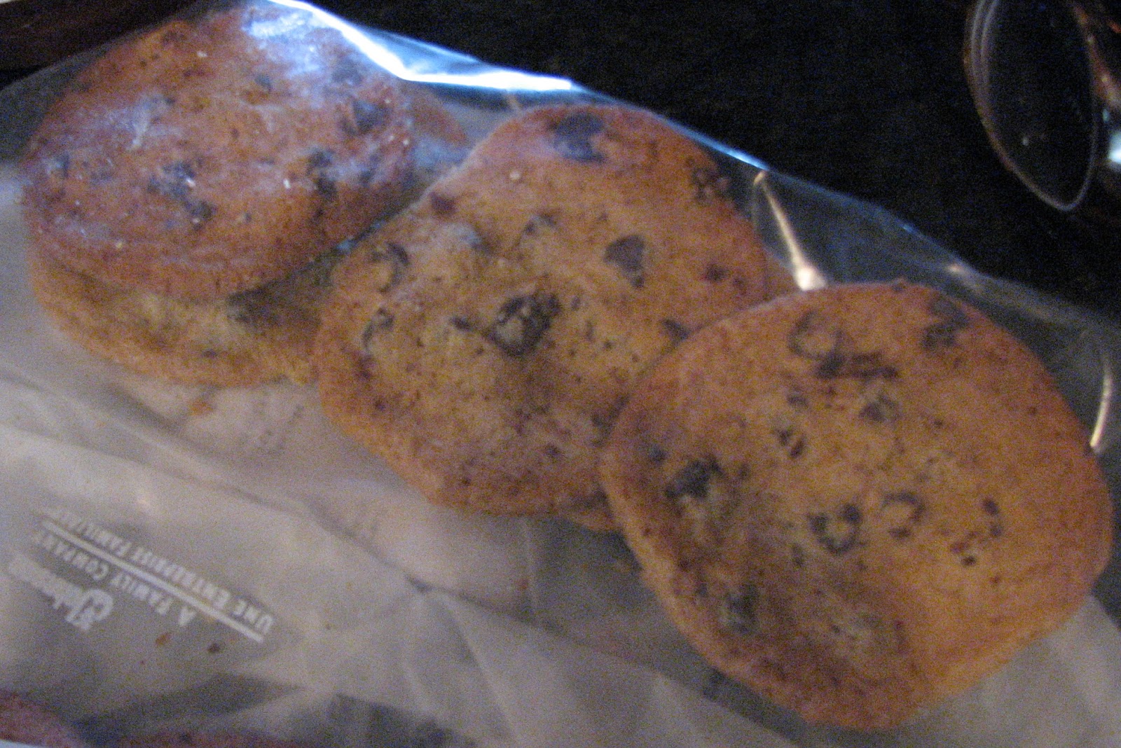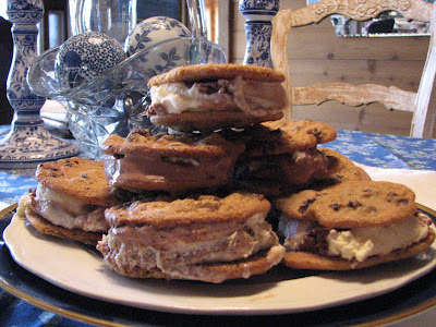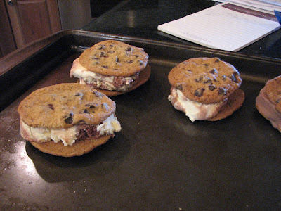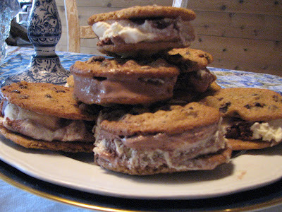 Then we'll take these chocolate chip cookies that I had in the freezer. It's a good idea to use them frozen so that they won't crumble when you add the scoop of ice cream.