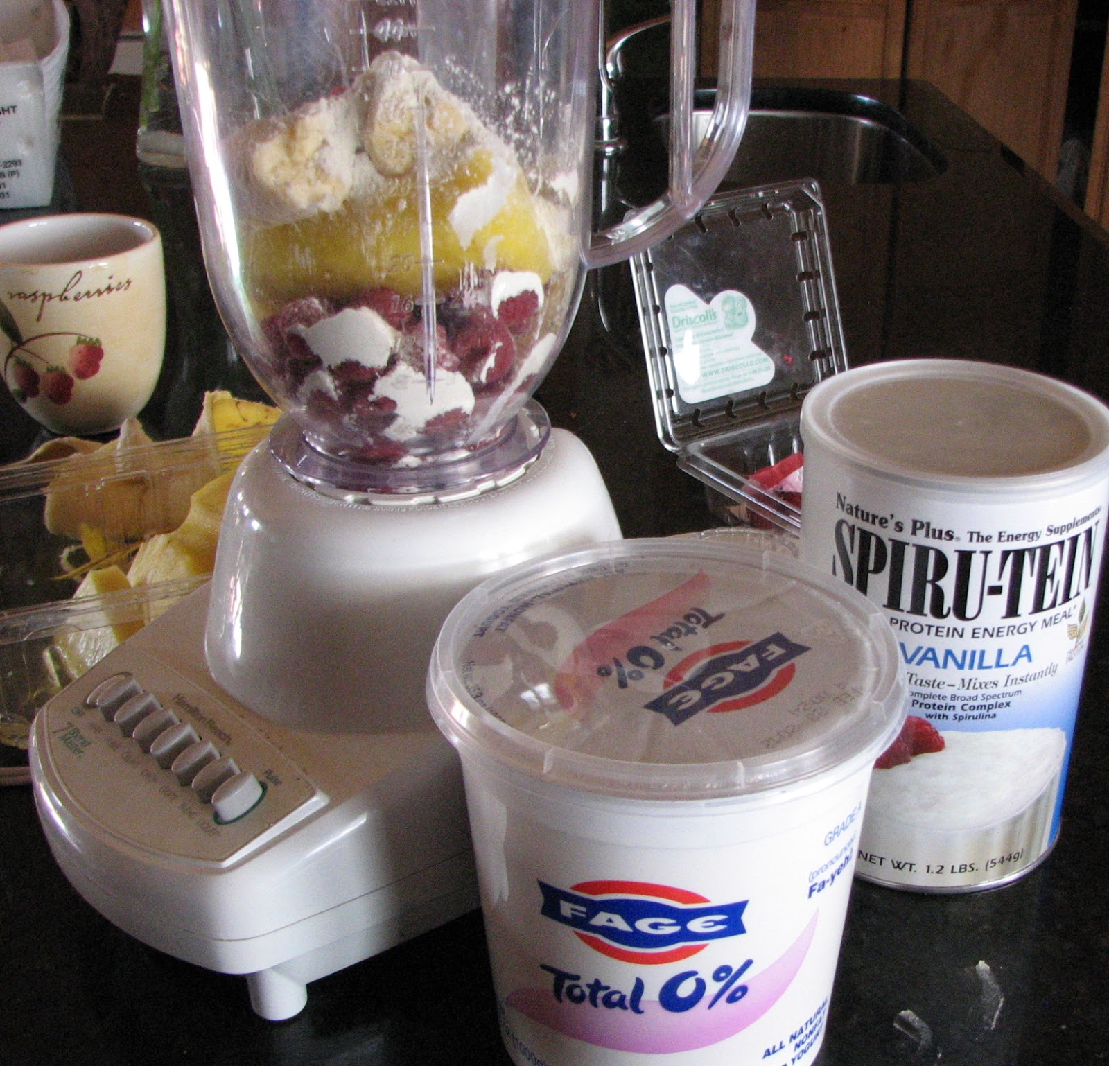 Which is when I get out my trust blender and throw together a protein shake. There are as many variations as there are ingredients in your pantry, but here are my essentials: