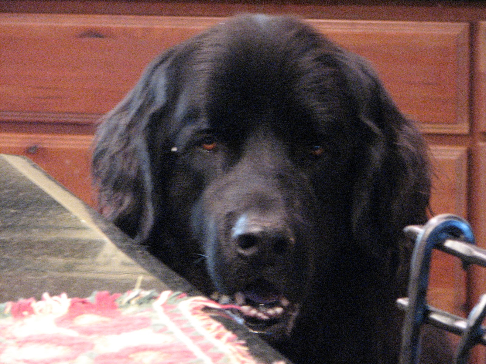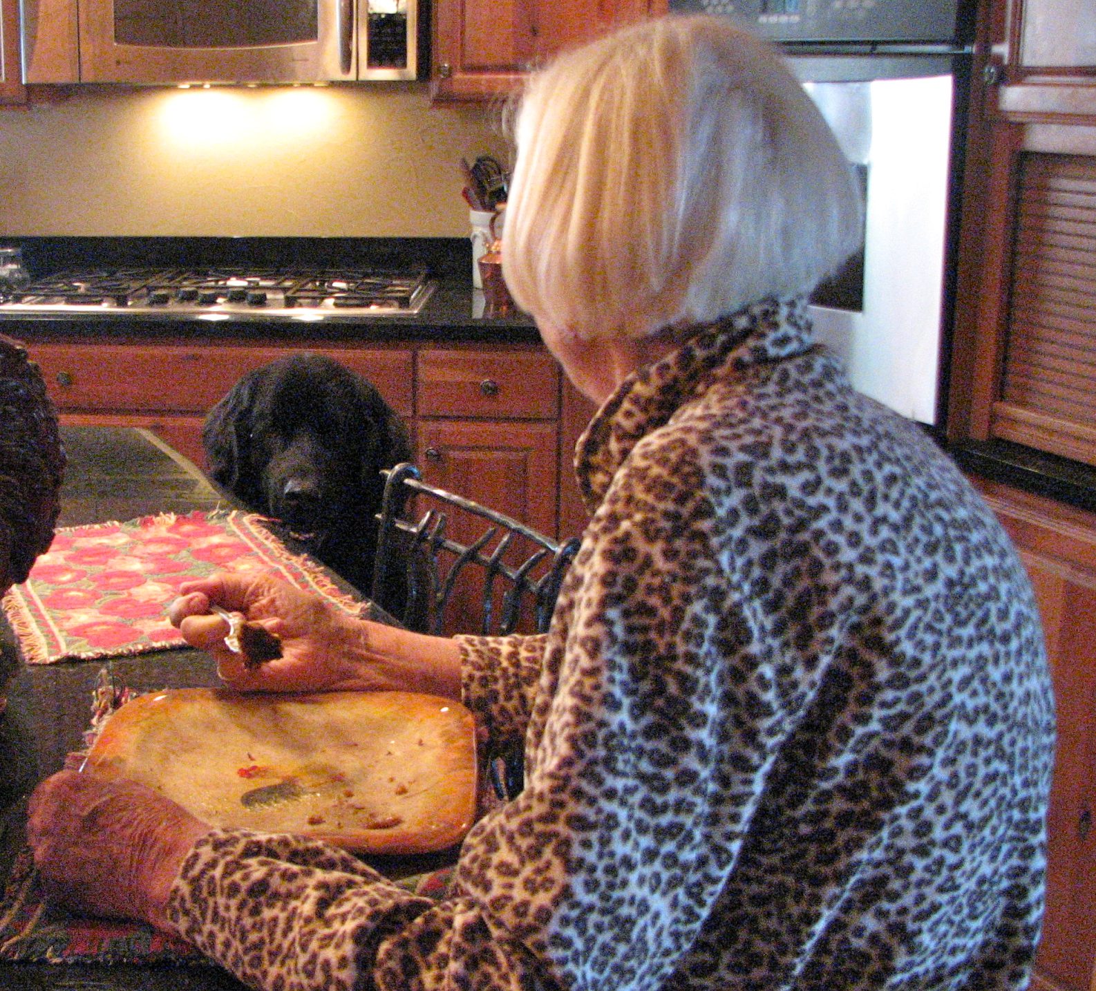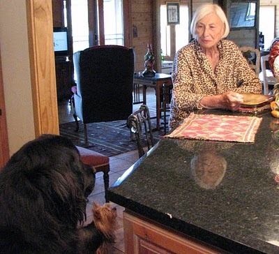 As Mom enjoyed her breakfast, she found she had an audience of two, Henry and Coco.
