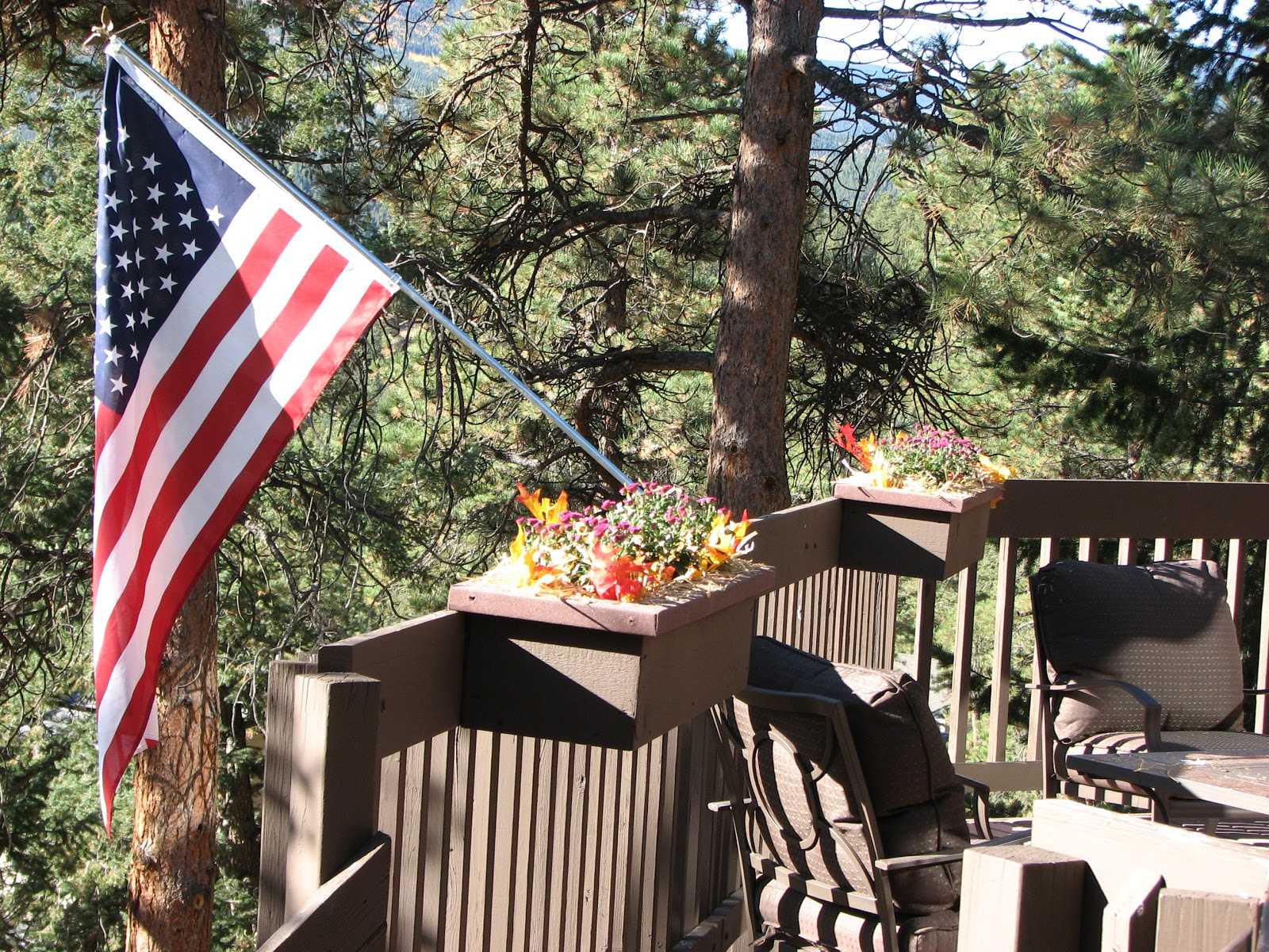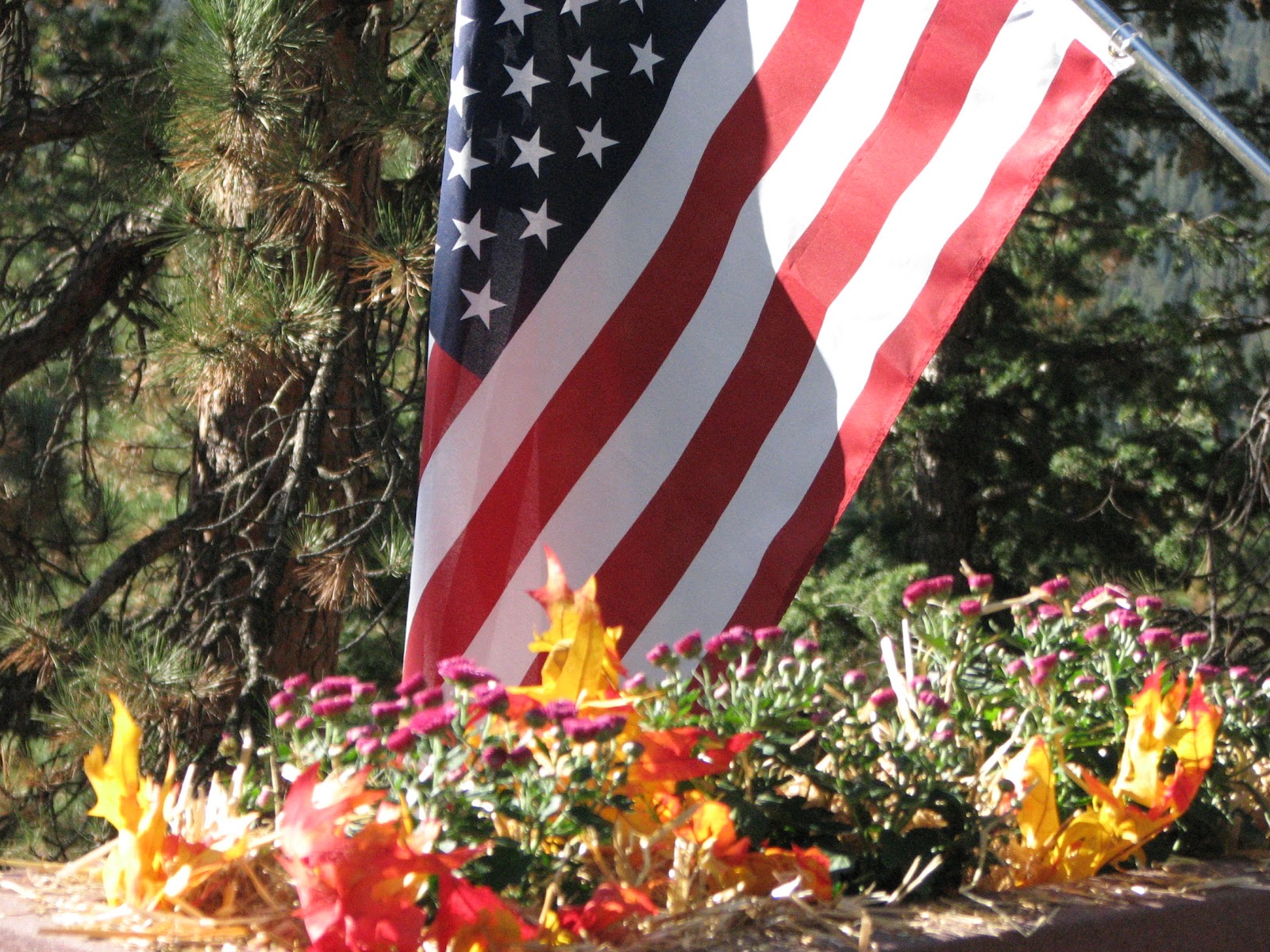 I intended to share these pictures of the beautiful autumn colors that surround us. We've got mums in the flower boxes