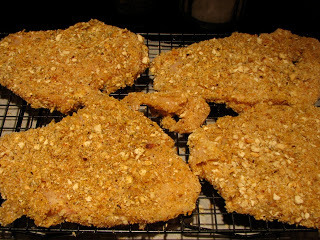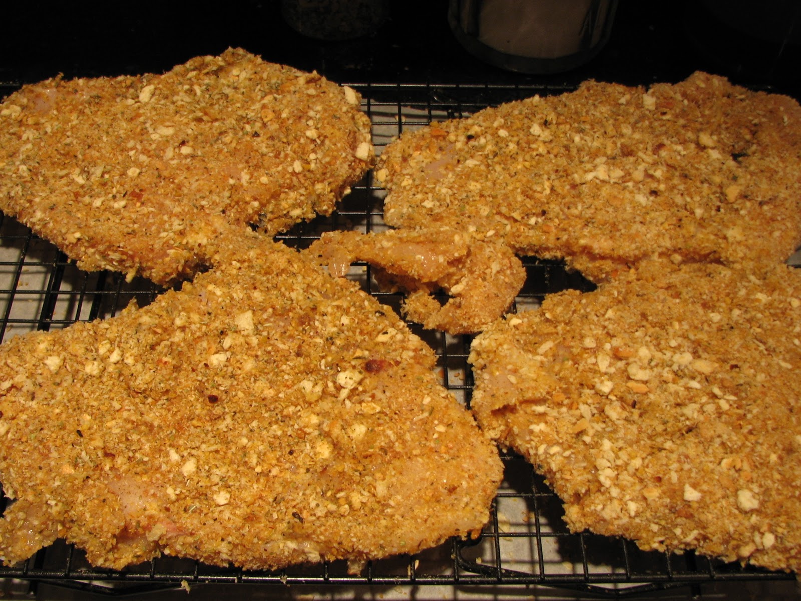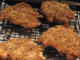 And here are my chicken cutlets, magically fried and back on the wire rack, resting.