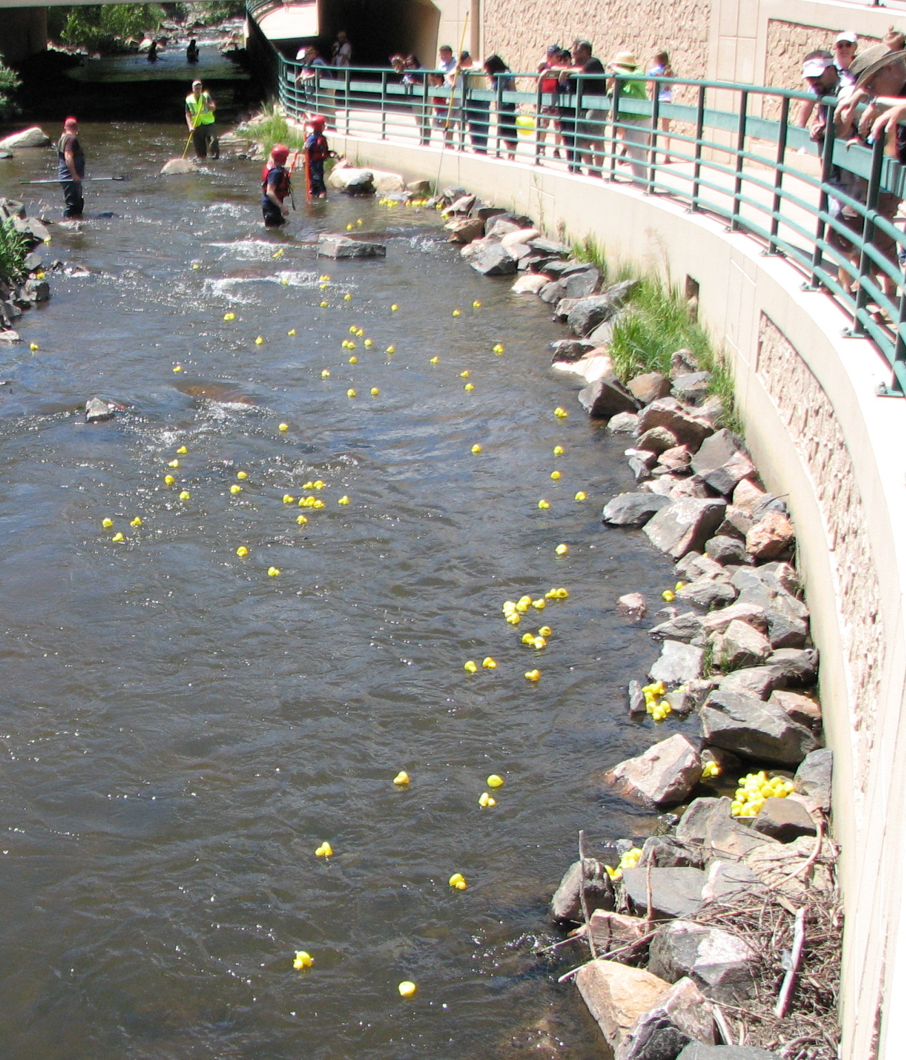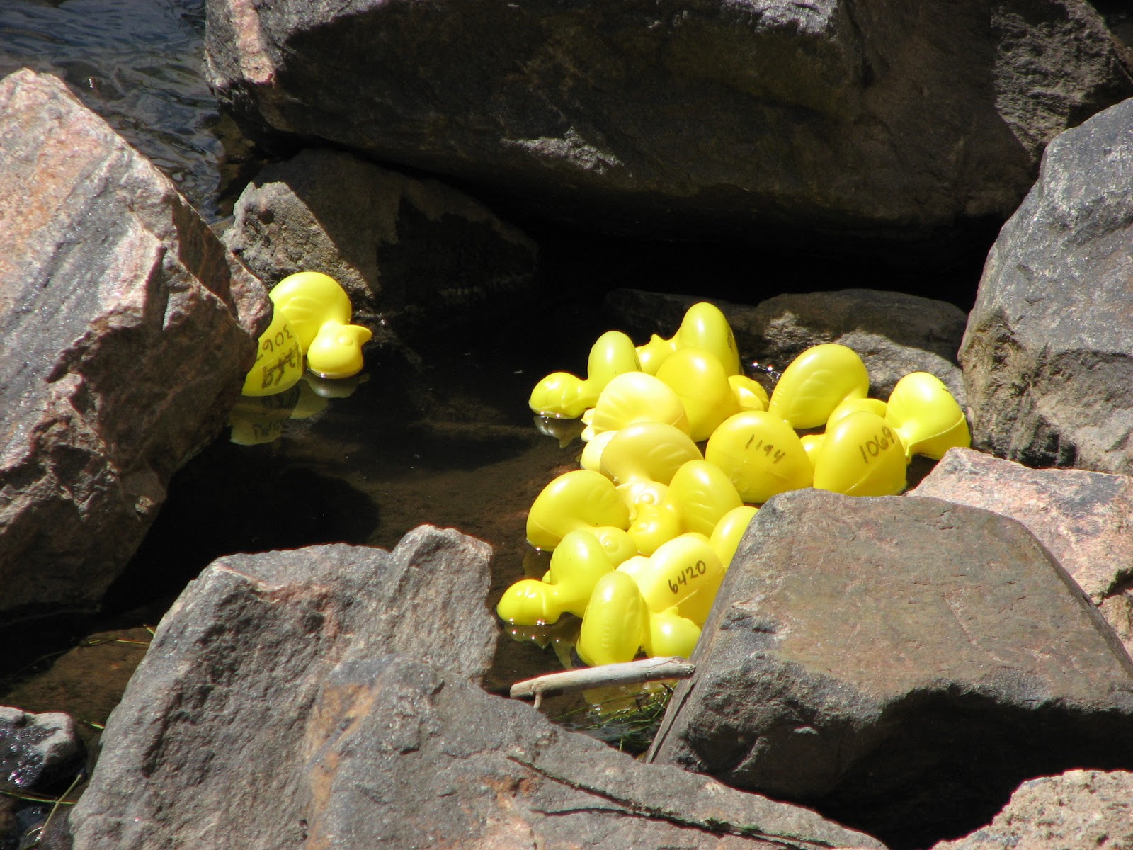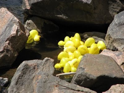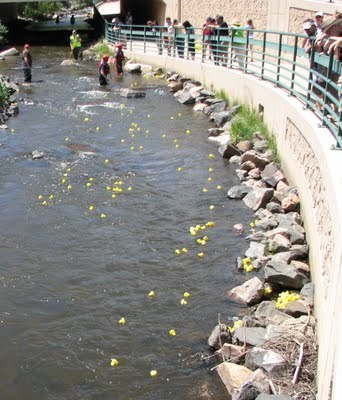 Afterwards, we stopped by Echo Thrift Store to pick up Mom, who was volunteering there and then headed to Main Street just in time to see the launch of the Dam Duck Derby.....an event which involves floating little rubber ducks down Bear Creek.