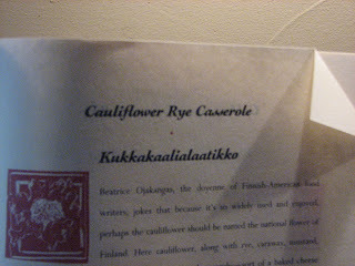 This week's recipe comes from Finland and is called "Cauliflower Rye Casserole" and comes with the caveat that you should appreciate rye and cauliflower if you want to enjoy this very rich dish. It is for all intents and purposes an egg strata, however, in texture and taste, it comes closer to feeling like a fondue. So rich you might want to have a nice dry white wine with it, yes, even for breakfast.