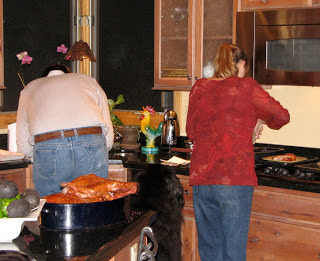 You see, it was her idea to fly up for Mom's birthday. Then John decided to join us. And then David decided to come too. At that point, we figured a party was in order, so we invited thirty of Mom's friends in Evergreen to join us.....sent out invitations, and got to work.