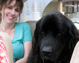 As you can see, not only did Henry sit in the seat next to her, he kept trying to encroach upon her side of the car in an attempt to take over the entire back row. Vicki's smile shows what a good sport she is, however her pale skin also shows just how car sick she was getting between the wind-y roads and Henry's drool.