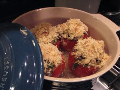 What enticed me into trying this recipe is that last summer I featured a recipe of beef stuffed tomatoes by the Two Fat Ladies, which I loved. So I was anxious to try out this vegetarian alternative to see how it compared.