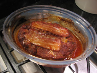 I love meatloaf. But throwing together the same ketchup/BBQ sauce/breadcrumbs variations can get boring after the 100th iteration. Which is why I was very interested in trying Julee Russo's Cajun influenced recipe. However, when I read her recipe, I didn't have all the required ingredients. For instance, her recipe called for half ground beef - half ground turkey. I only had ground beef. It called for fresh jalapeno, I had a jar of pickled jalapenos. Tomato paste? Nope, tomato sauce. You can see where this is going....