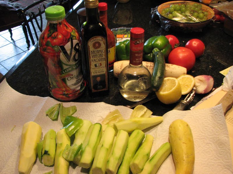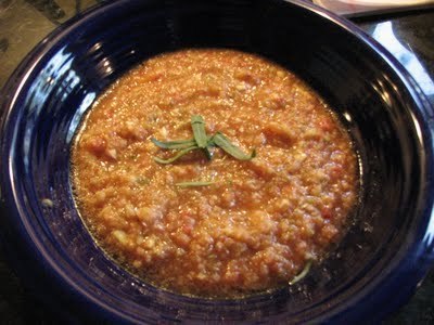 Every year I post my gazpacho recipe on this blog. It has become for me, a signal that summer is here. Every year the end-result is a little different, depending on what recipe I've consulted. This year, I didn't consult any recipes and just went with what I had in the vegetable drawer and the pantry...which worked out beautifully.