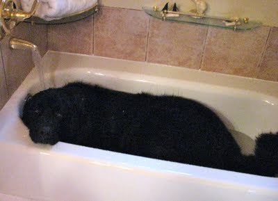 A moment later I turned back and saw that my darling Henry had decided that my tub could be HIS spa!