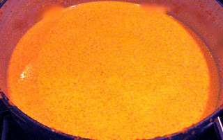 I was drawn to Ms. Thomas' recipe for carrot soup for two reasons: I could incorporate yogurt, which is a good source of protein. Mom isn't feeling well right now, creating highly nutritional meals has become a priority since her appetite is pretty scarce and she can't afford to lose weight. Second, the recipe calls for an interesting melange of spices which remind me of the Moroccan flavors I've enjoyed in other dishes.