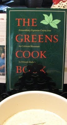 The spine of the book is broken, some of the pages are loose, and there are slips of paper tucked between the pages or 'good one' written in the margins to mark a favorite recipe. The fact that it was well-used was a recommendation in itself. This classic vegetarian cookbook presents recipes that are accessible, but rich and comforting...think Julia gone vegetarian and living in Southern California in the seventies, or Alice Waters, for that matter.
