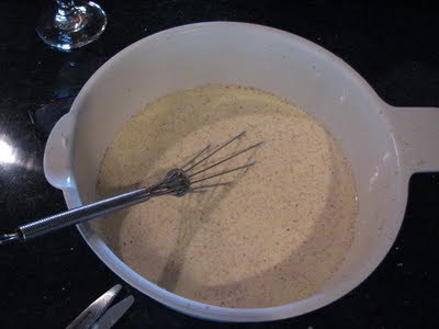 Beat eggs, yolks, half and half together. Mix in about a third of the goat cheese and beat until smooth. Add a salt, pepper, and nutmeg to taste.