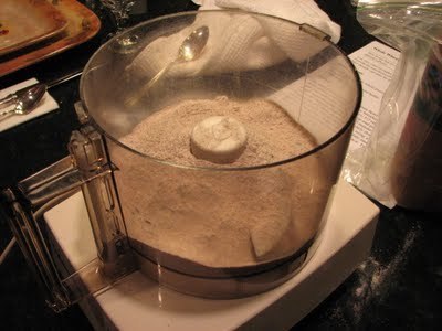 Add a 1 1/4 cups of flour and a pinch of salt to the food processor.