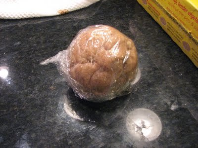 Wrap the ball of dough in plastic wrap and put into the fridge for at least 30 minutes.