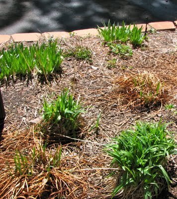 I've been told that they are lilies. And that I'm supposed to clear out that dead grass surrounding them from last summer.
