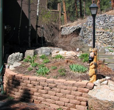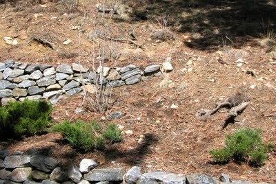 And then I really should think about filling out this mass of scraggly bushes and pulling that one bunch of dead branches that used to be a bush of some sort. (Are you impressed by my sophisticated knowledge of plant types?)