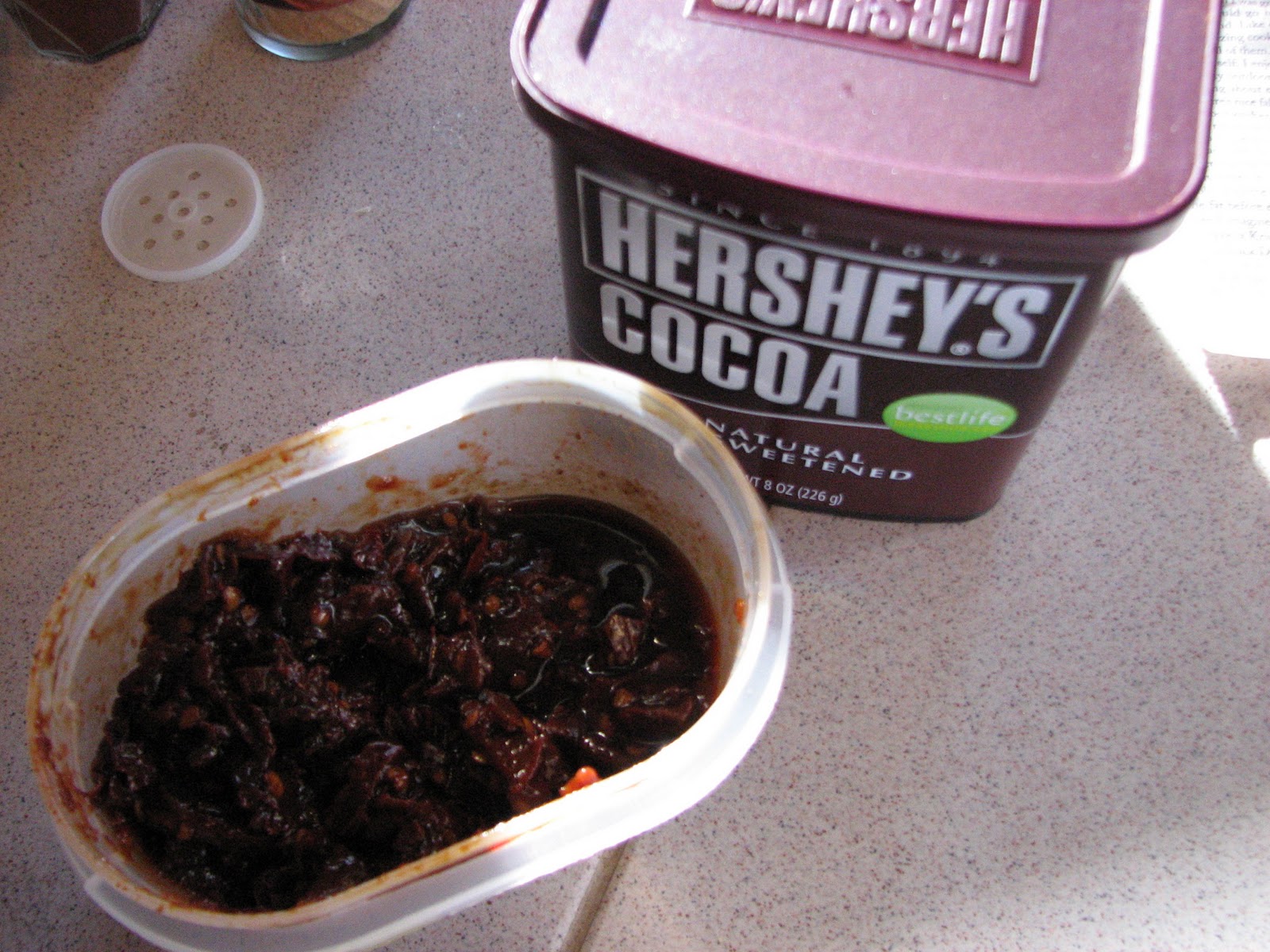 Then, with inspiration from Bobby and Tyler, I added a couple tablespoons each of chipotle peppers in their smoky adobo sauce and some unsweetened cocoa powder to add a chocolatey richness often found in Mexican sauces.