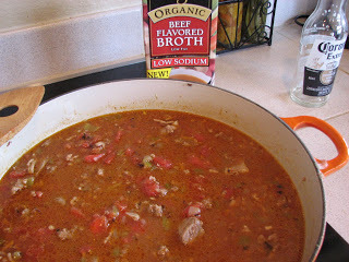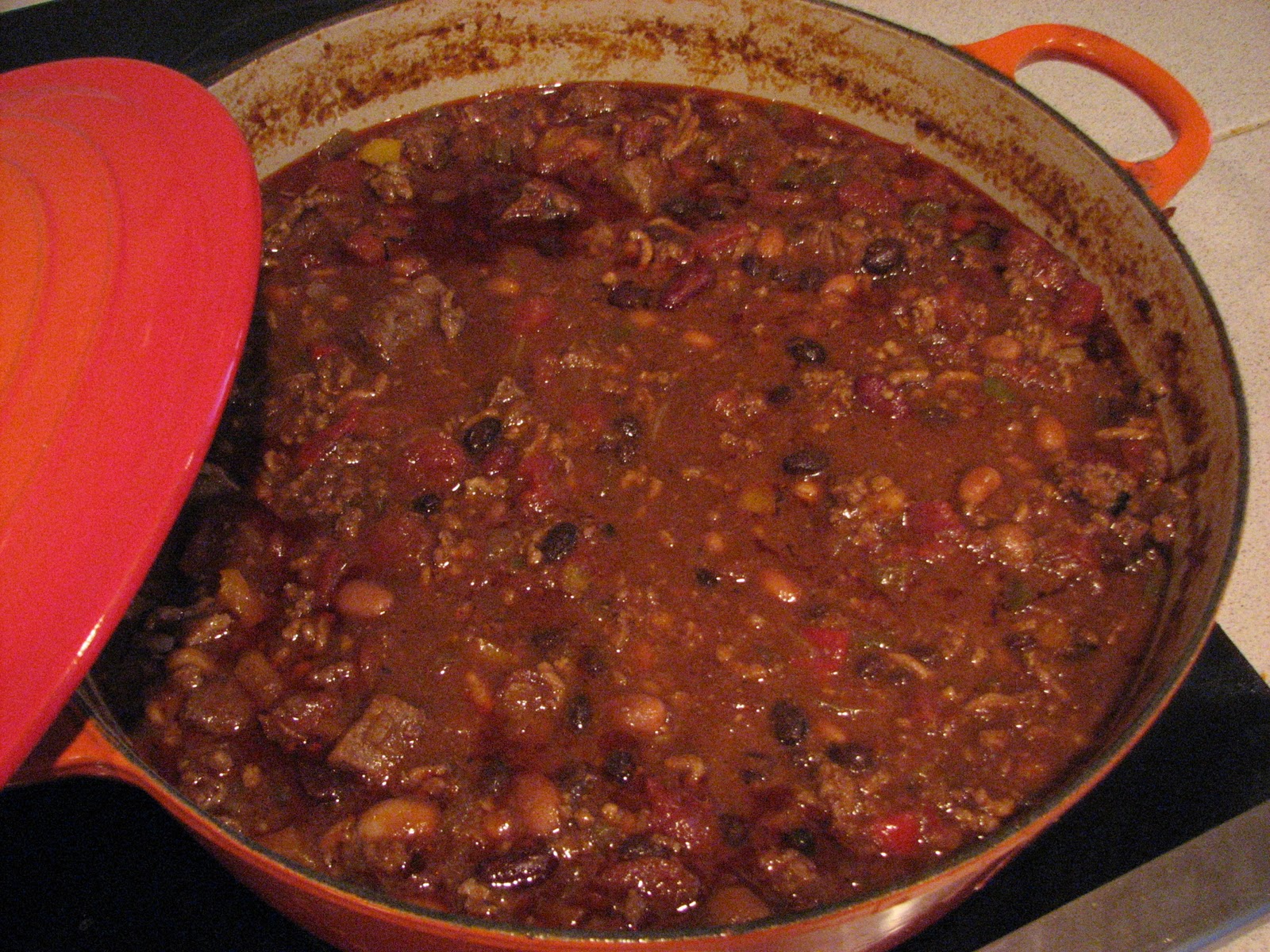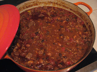 And here's what it looks like after it's cooked for a couple hours. If the chili is too thick, just add more beer (or another liquid of your choosing, we prefer beer.)