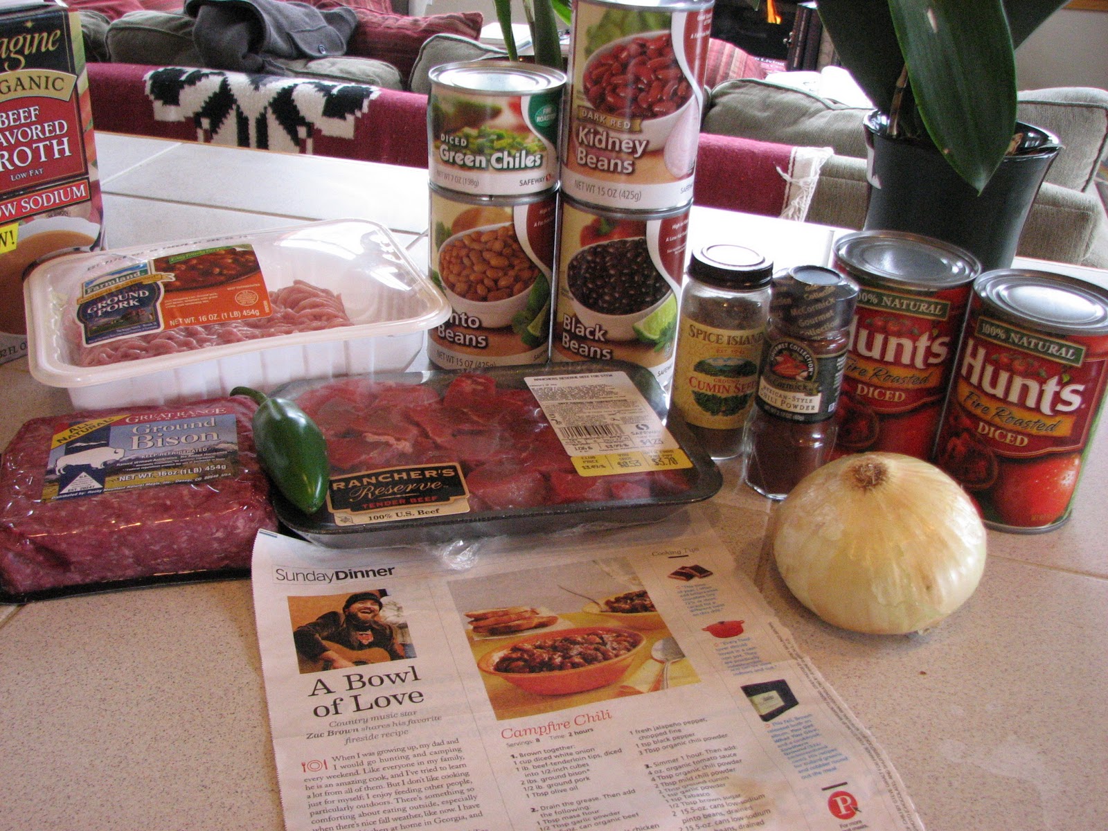 I've never met a chili recipe I wouldn't try...but then again, I've never met a recipe I'd follow to a T. So when I read country music star Zac Brown's recipe for Camfire Chili in last week's Parade magazine, I knew I had to try it. But I also knew that it wouldn't be long before I started to improvise....I've never been good at following directions.