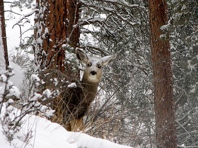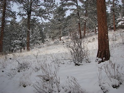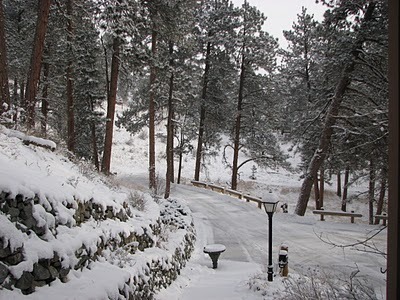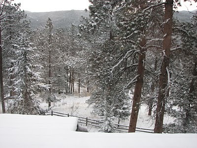 Nearly a year to the day that I first moved to Evergreen, I've finally moved into my 'forever' home. Which is why I've been off-line for the past several weeks. We had the closing and then the moving (we're still surrounded by boxes) but the wonderful news is that after moving three times in one year (and looking at hundreds of houses), we've finally found a home of our own. This is a picture I took this morning after our first big snow.