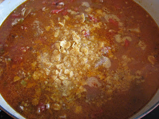 His recipe also called for masa flour as a thickener. Which I didn't have. So I crumbled up some corn chips and achieved the same result.