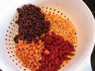 Next up is the addition of beans. We've got four different varieties here....the more beans the better in my book. They're a great source of fiber and make the chili go further if you're cooking for a crowd.