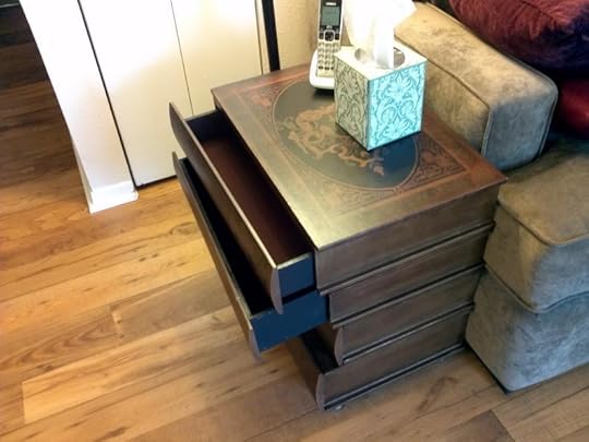 I loved this piece so much, I had to buy it. Thankfully it wasn't too expensive–it's a piece of furniture carried by Hobby Lobby, and I managed to get it for $113 and change. The book ends are drawers: