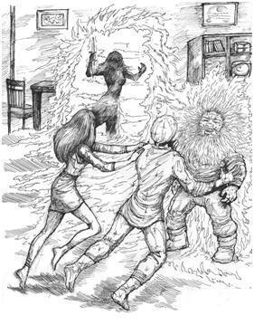 Suddenly, there was an abrupt pressure on his back and he was falling forward, tumbling into Shetland. The dwarf had not been expecting the collision and while he normally could have resisted such an impact, he was knocked off his feet as well. They fell together in a heap, at the far end of the room. Everything went quiet.