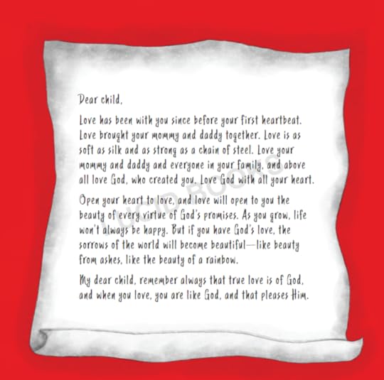 This is a sweet little book about how much God loves His children and some of the promises He makes to them: He promises to always love them no matter what, to take care of them when things are not the way we want, and to always be there when it seems He is not.