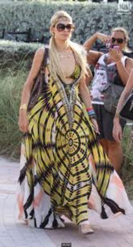 And finally, according to People We Can’t Believe We Ever Gave a F%&k About Magazine (this one I’m not sure of but I’m giving the credit to Andy), “Paris Hilton was spotted in Miami on Wednesday sporting a rather interesting-looking ensemble. Her summery dress was peculiar, to say the least! What do you think of Paris’ boho-style cover-up?”
